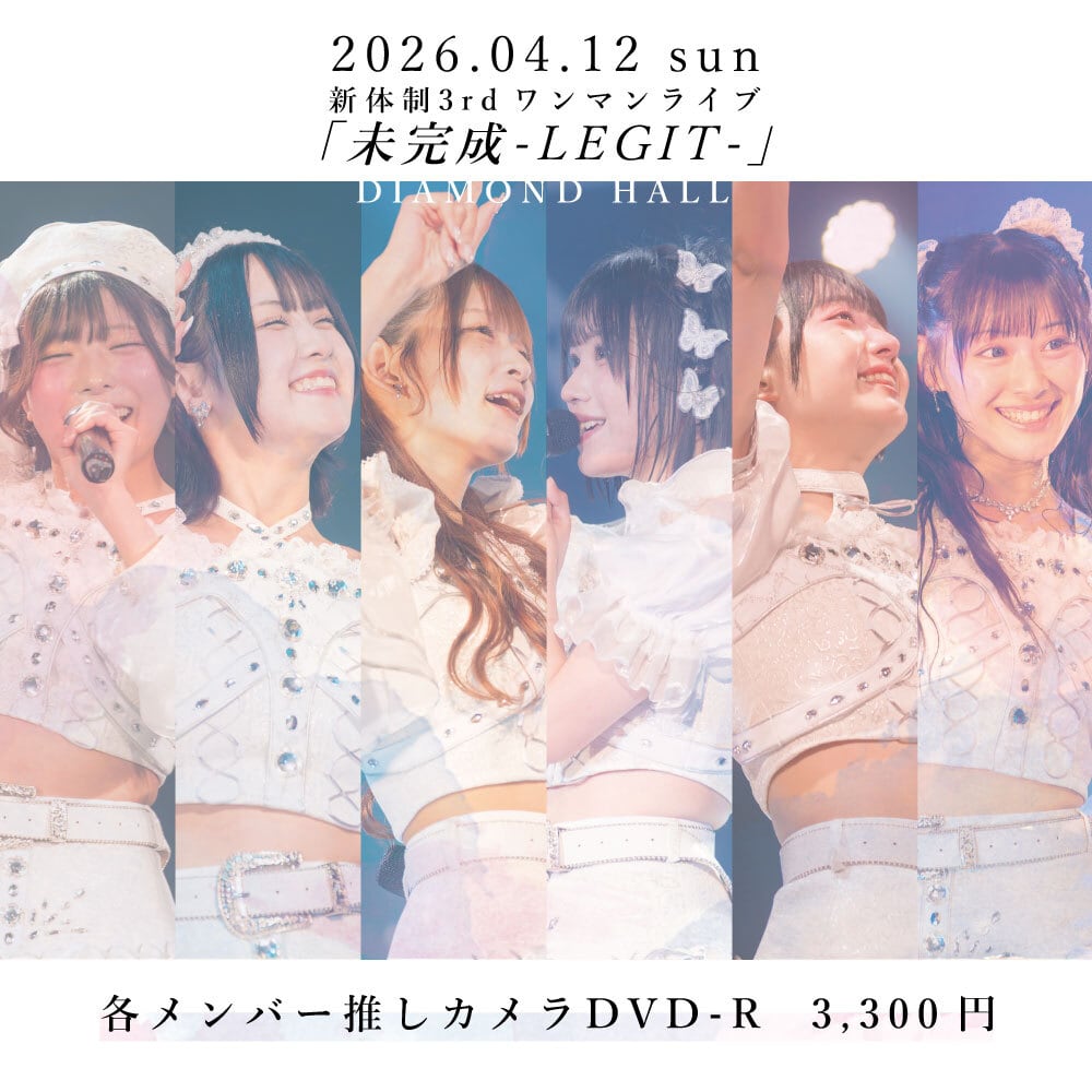 2026年4月12日 DIAMOND HALLにて開催されました、手羽先センセーション3rd ワンマンライブ『未完成-LEGIT-』の各メンバー推しカメラDVD-Rを受注生産で販売!